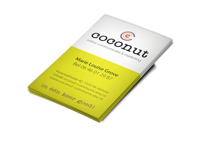 La Grove groeide en in 2016 werd het tijd voor een andere naam, die beter paste bij wat ik deed. Ik zocht een naam met een positieve associatie én die toekomstbestendig zou zijn. Het bleek een uitdaging om een naam te vinden waarvan zowel de domeinnaam als social media namen nog vrij waren. Na enkele brainstormsessies was de kogel door de kerk: het werd Coconut Communicatie: content, communicatie en coördinatie en het nut om het in 1x goed aan te pakken. Tot de dag van vandaag ben ik blij met deze keuze.